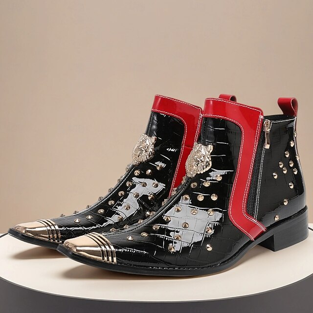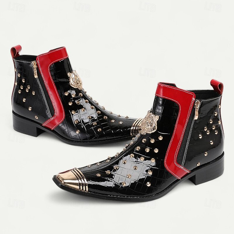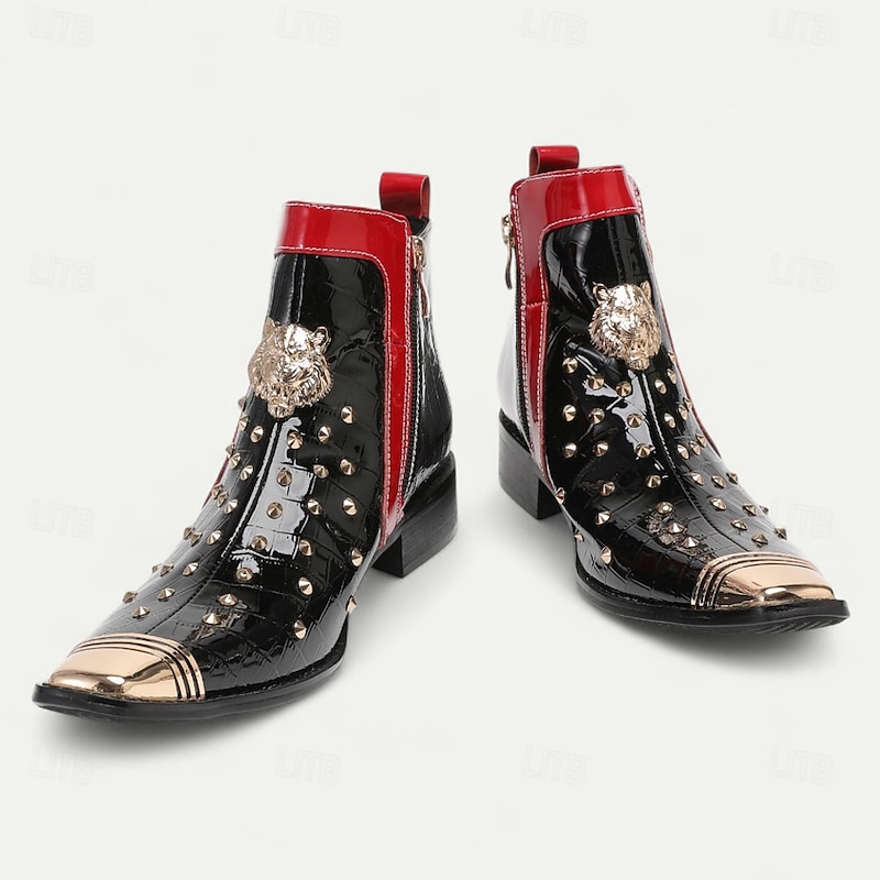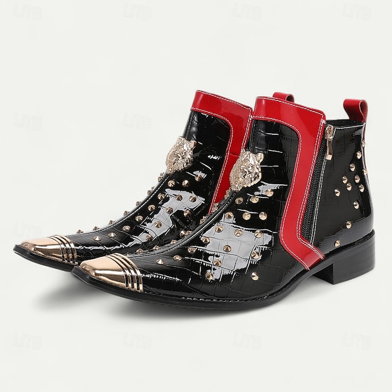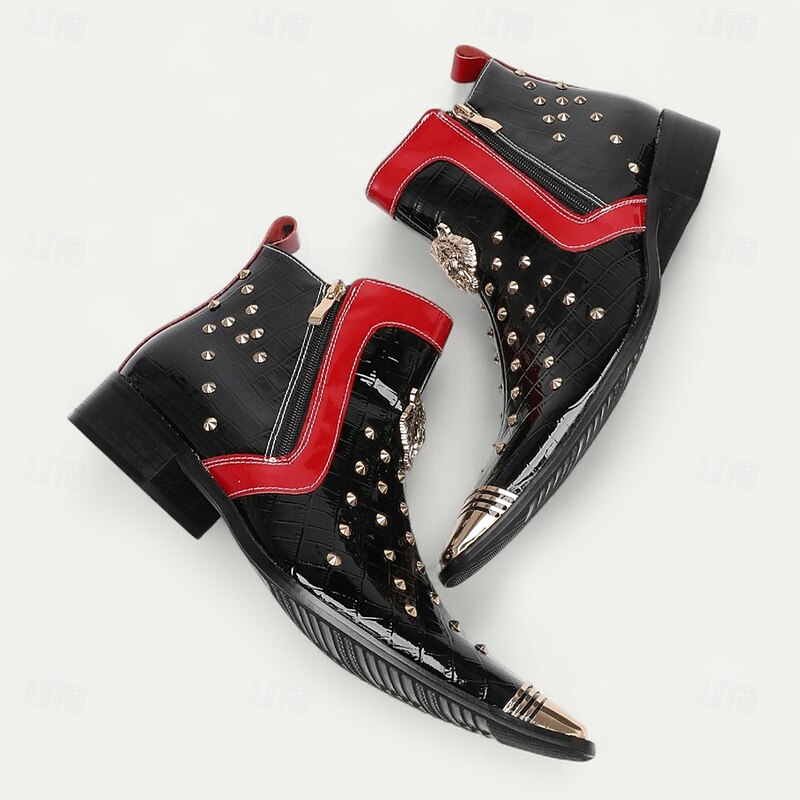 Why Choose Men's Black and Red Patent Leather Cowboy Boots with Metal Studs – Gothic Punk Western Style Festival & Stage Shoes?