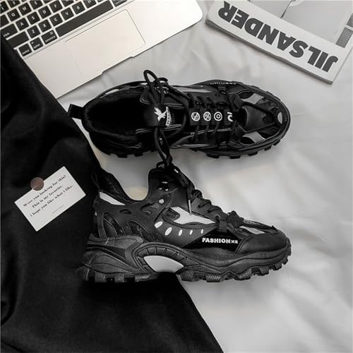 Exusiai Men's Chunky Sole Sneakers Stylish Lace-Up Dad Shoes Platform Athletic Breathable Walking Running Shoes for Comfort & Durability 7