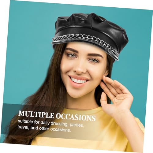 PU Chain Newsboy Cap Vintage Sailor Fiddler Bakerboy Flat Hat for Autumn Winter Versatile Accessory for Daily Wear Parties and Travel Black 7