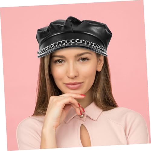 PU Chain Newsboy Cap Vintage Sailor Fiddler Bakerboy Flat Hat for Autumn Winter Versatile Accessory for Daily Wear Parties and Travel Black 6