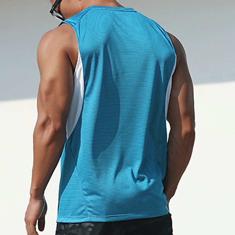Men's GYM Tank Fitness Tank Basketball Shirt Men Tops Tank Crew Neck Sleeveless Sports & Outdoor Vacation Going out Casual Daily Gym Quick dry Breathable Soft Patchwork Color Block Blue Green 25