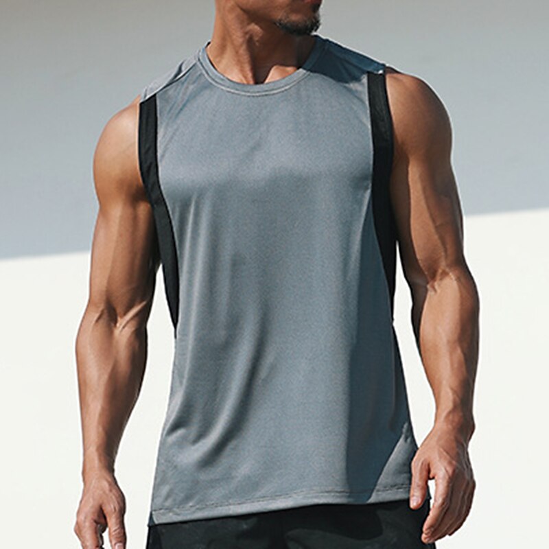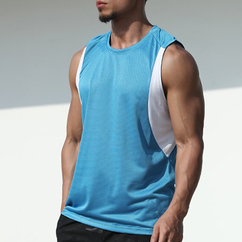 HOT ! Men's GYM Tank Fitness Tank Basketball Shirt Men Tops Tank Crew Neck Sleeveless Sports & Outdoor Vacation Going out Casual Daily Gym Quick dry Breathable Soft Patchwork Color Block Blue Green