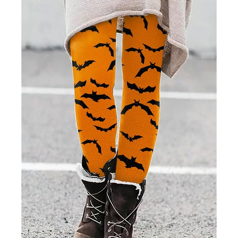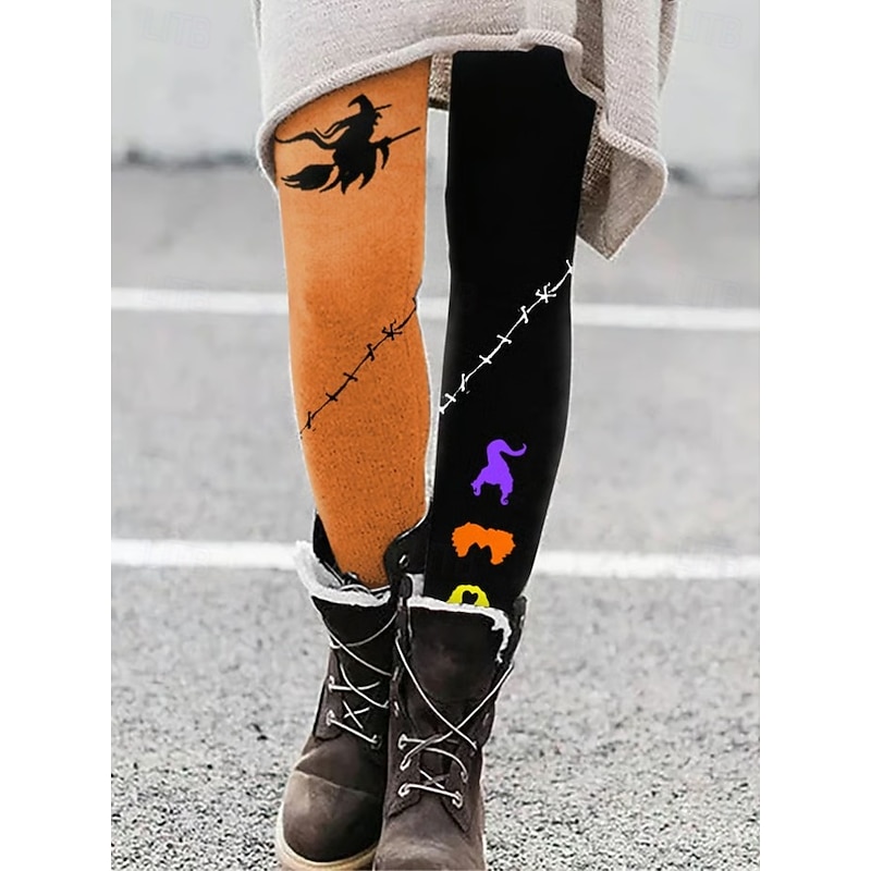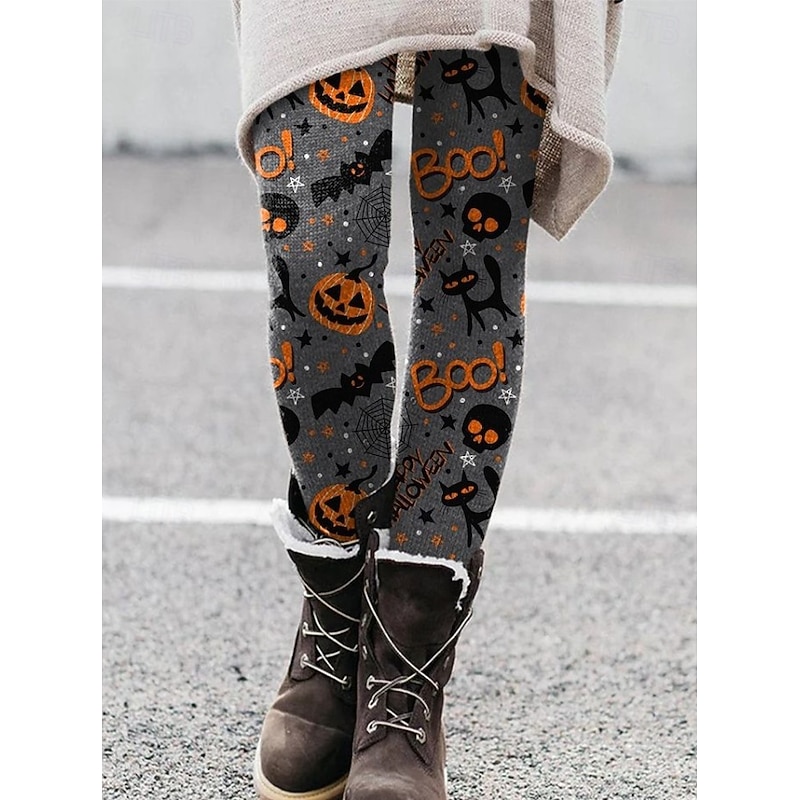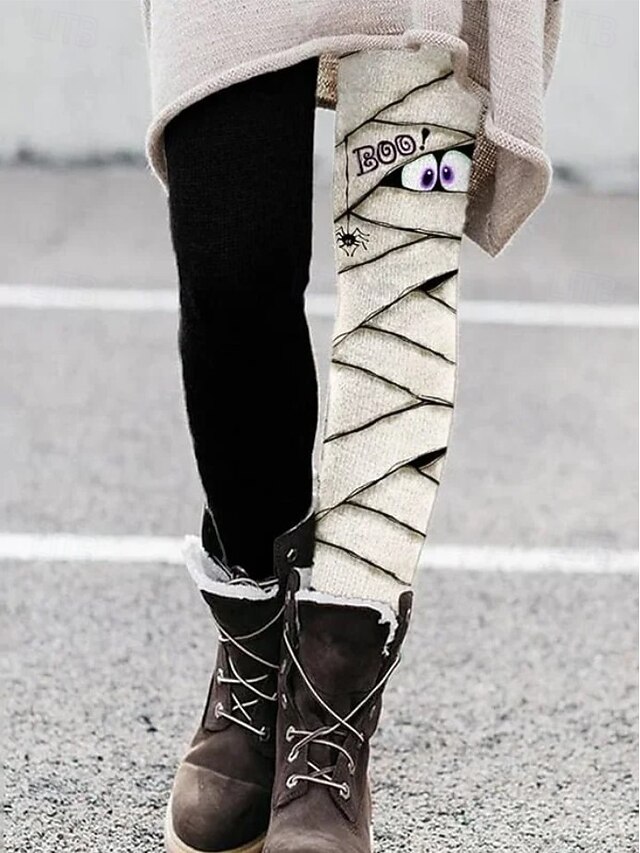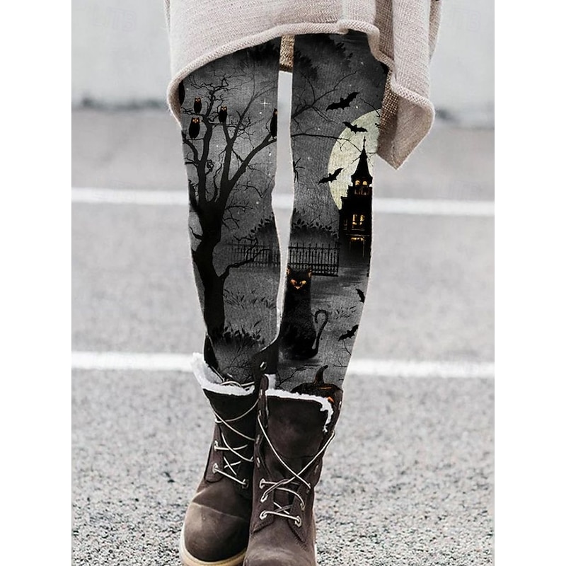 More information about Women's Leggings Vacation Vintage Fashion Ankle-Length High WaistPantsHalloween Graphic Halloween Monster Printing Soft Breathable Stretchy Formal Outdoor Vacation Black Green Ash Black and Dark Gray