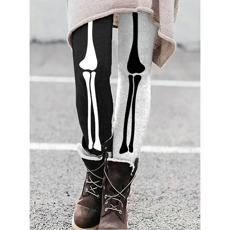 Women's Leggings Vacation Vintage Fashion Ankle-Length High WaistPantsHalloween Graphic Halloween Monster Printing Soft Breathable Stretchy Formal Outdoor Vacation Black Green Ash Black and Dark Gray 11