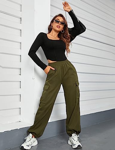 BMJL Womens Cargo Pants High Waisted Parachute Pants Wide Leg Baggy Y2K Trendy Trousers with Multiple Pockets 5