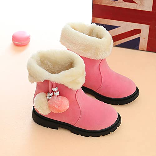 POLG Kids Girls Princess Shoes Fashion Bowkont Cotton Boots Slip-on Warm Shearling Winter Lightweight Snow Boots 6