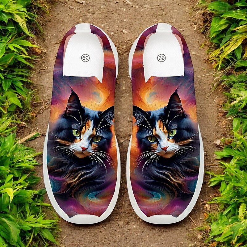 More information about Women's Cat and Butterfly Print Flyknit Sneakers - Breathable Lightweight Casual Shoes for Everyday and Outdoor Activities