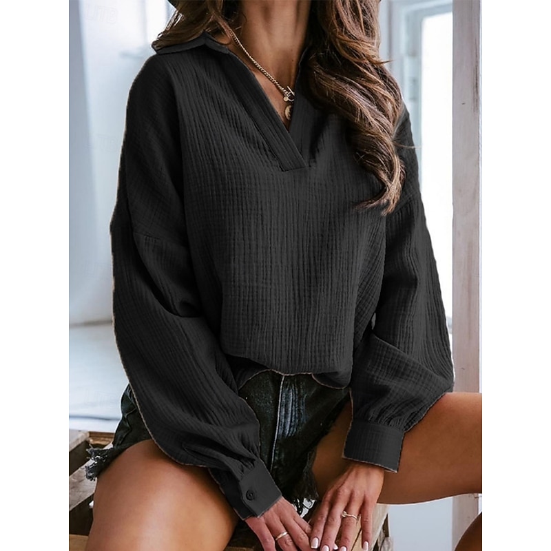 More information about Women's Shirt Blouse Solid Color Basic Casual Long Sleeve Notched Neck Regular Tops Daily Black White Summer Spring Fall