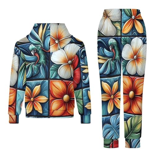 Boys Girls 2 Piece Sets Hoodie and Pants Sweatshirt Set 2 Pieces for Kids, Brazilian Patterns Retro 2