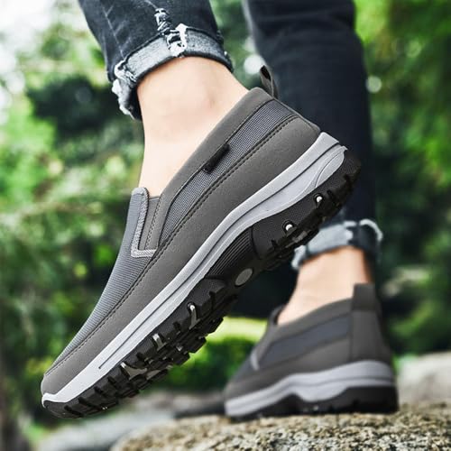 Orthowalkway Mens Shoes, Men's Arch Support Slip-on Canvas Loafers, Outdoor Casual Non Slip Orthopedic Sneakers 7