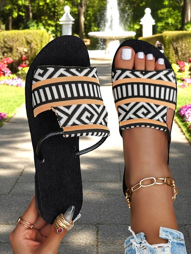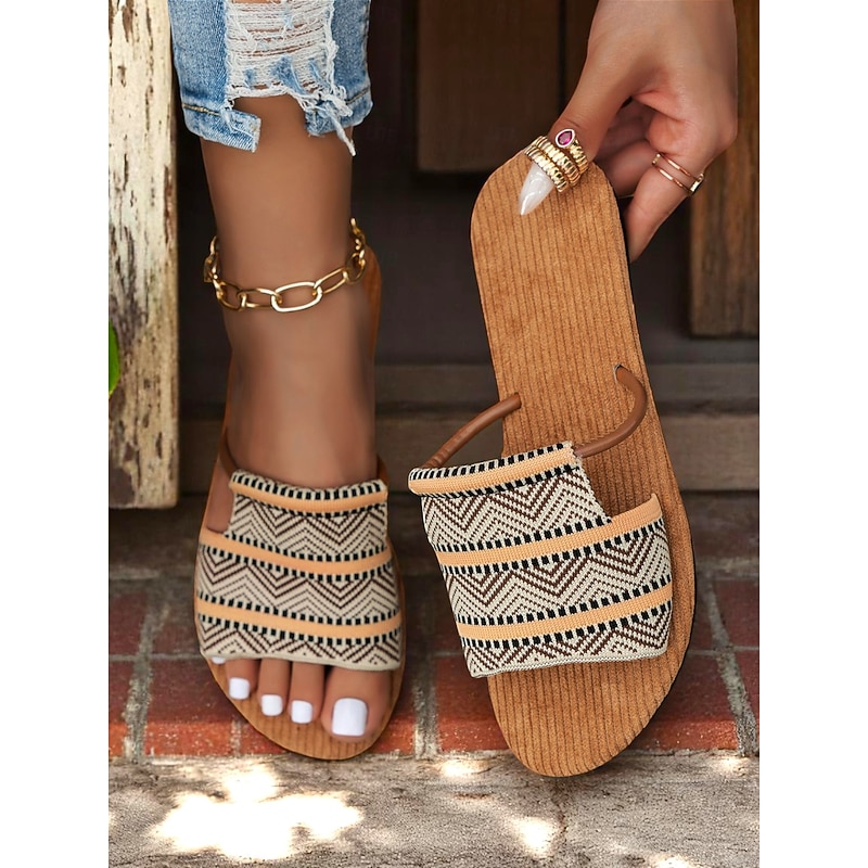 HOT ! Women's Boho Tribal Print Slide Sandals – Ethnic Pattern, Comfortable Flat Sole, Great for Beach Trips & Summer Outings