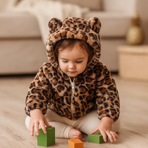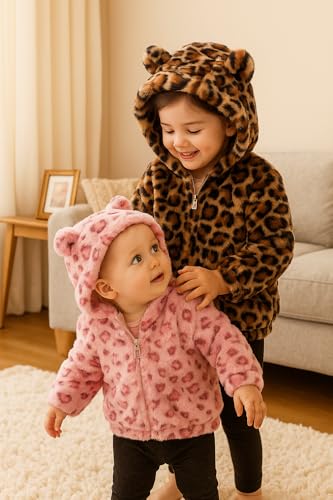 • TODDLER GIRLS FLEECE JACKET: The toddler hoodie outerwear jackets has cute bear ears, cute and adroable. Kids cheetah print jacket designed two pockets, full zipper up convenient to wear, elasticated hem for windproof and warm.