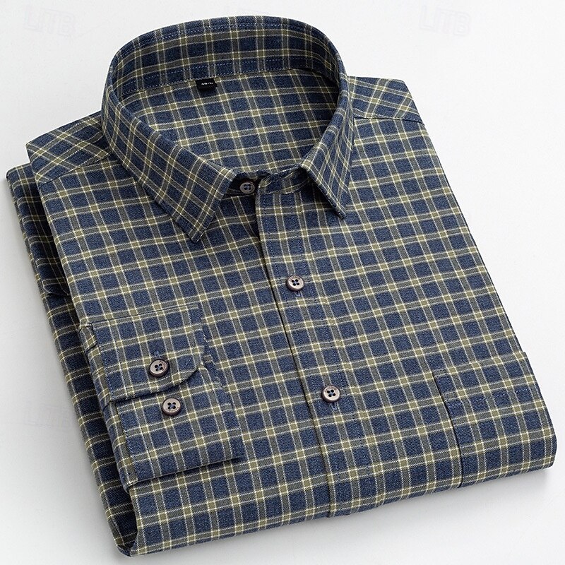 Highlights - Made from 100% cotton for a comfortable wear in spring and fall - Long sleeves for a classic and formal look - Designed with a plaid pattern and turndown neckline - Suitable for weddings or daily wear - Features a stylish button design for an elegant touch in men's fashion