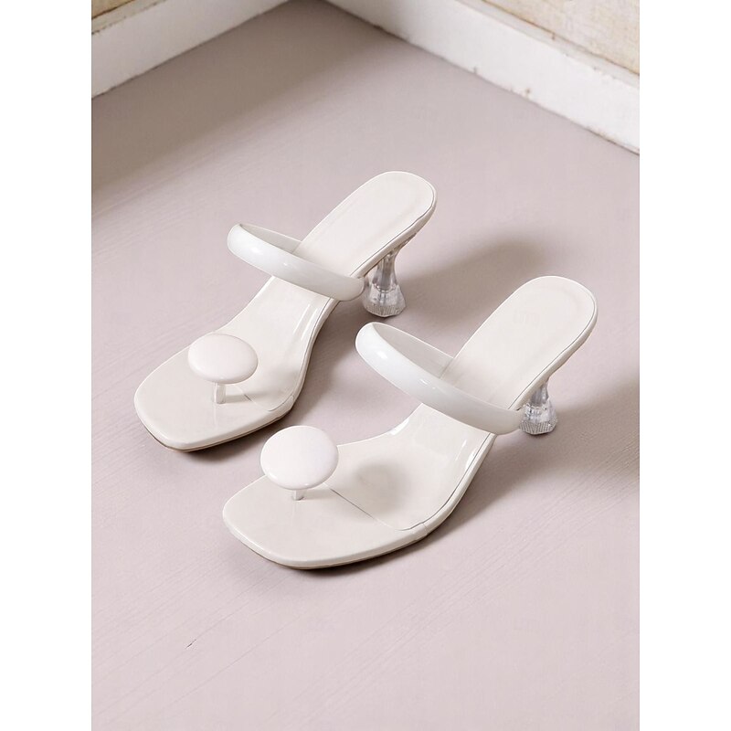 Women's Black Glossy Toe Ring Heeled Mules – Modern Sculptural Sandals with Clear Flared Heel for Nightlife Party, Fashion Shoots, and Trendy Street Style 20
