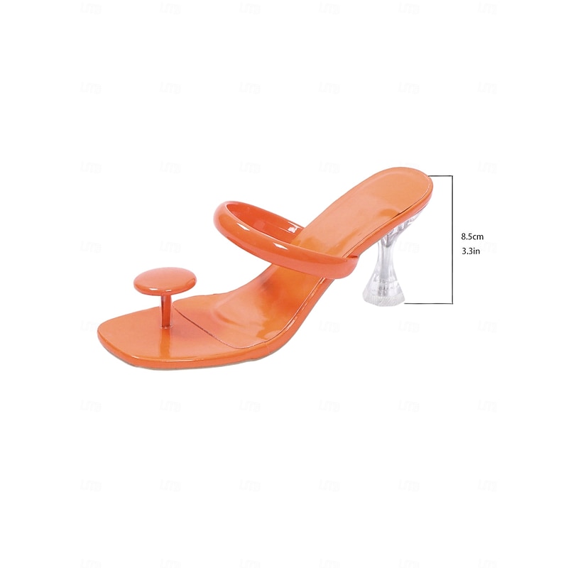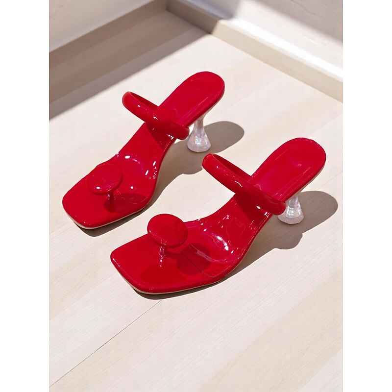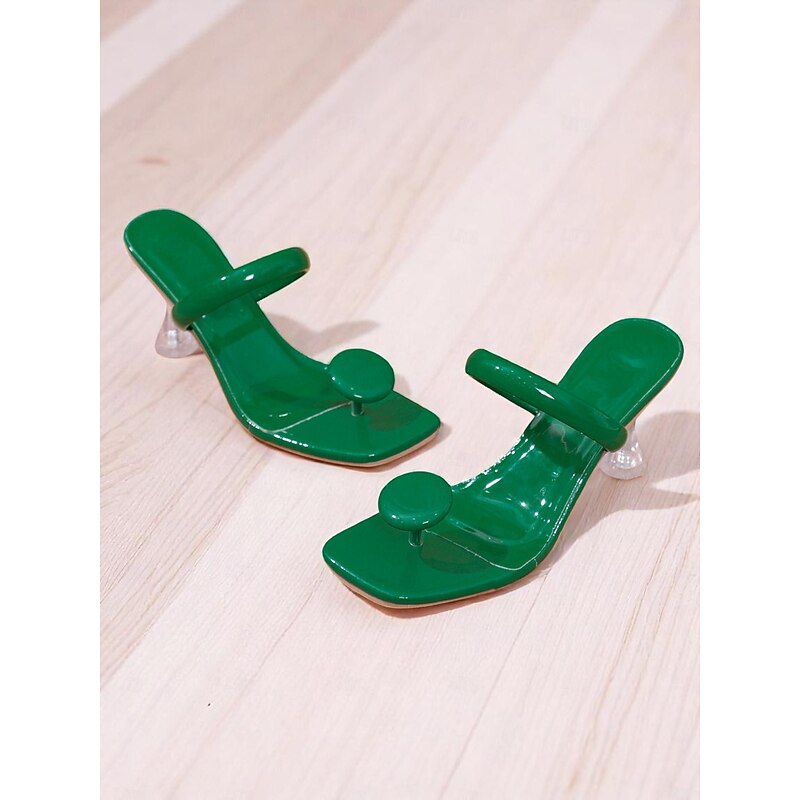 HOT ! Women's Black Glossy Toe Ring Heeled Mules – Modern Sculptural Sandals with Clear Flared Heel for Nightlife Party, Fashion Shoots, and Trendy Street Style