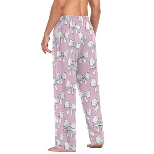 Men’s White Bows Pajama Pants with Pockets, Comfortable Lounge Sleep Bottoms#203 1
