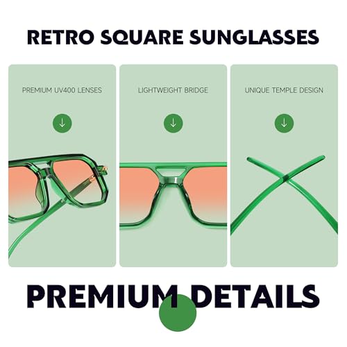 • 【Retro Aviator Sunglasses Womens】Inspired by the iconic 70s style, these sunglasses feature a classic aviator shape with a trendy square frame, perfect for both men and women. The vintage design adds a touch of timeless elegance to any outfit.
