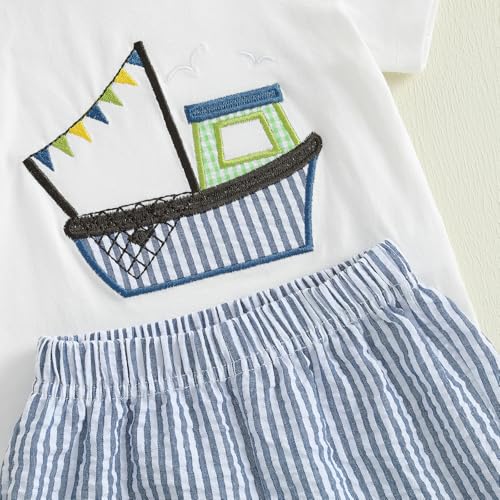 Toddler Baby Boy Summer Outfits Short Sleeve Fishing Boat T Shirt Tees Striped Shorts Set Infant Beach Clothes 1