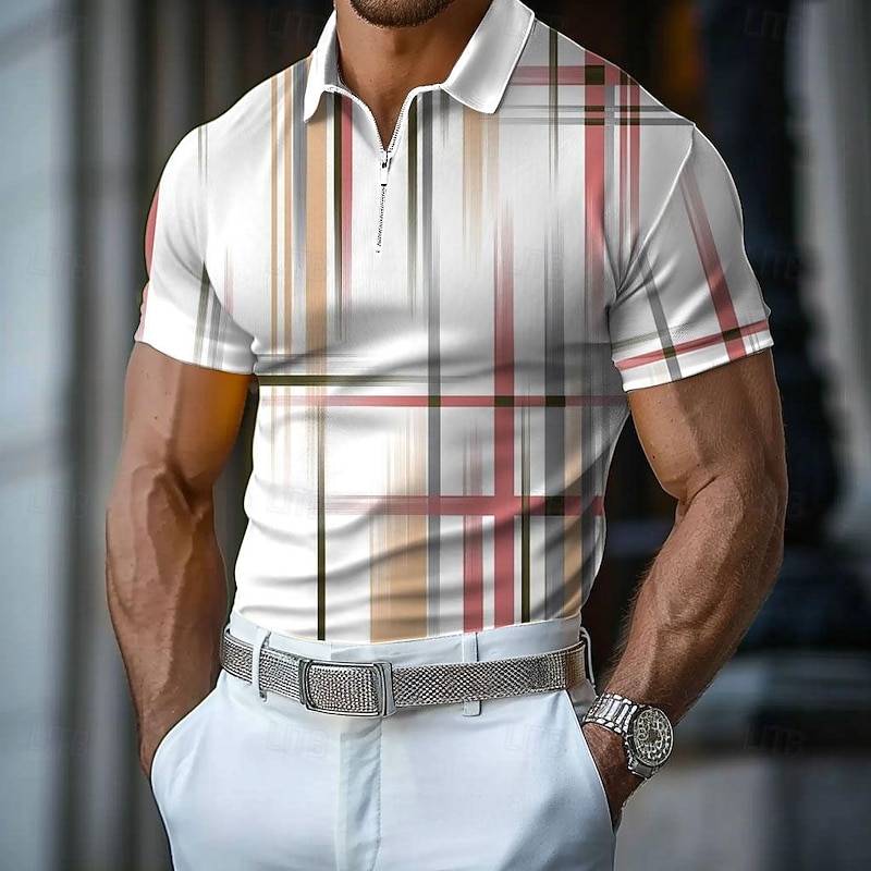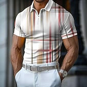 More information about Men's Geometric Zip Polo Shirts Golf Shirt Short Sleeve Polo Shirts Collared Shirts Casual Vacation Wear Formal Wear Festival Wear 3D Print Quarter Zip Polo Summer Spring White Yellow Blue