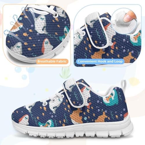 Boys Sneakers Kids Running Shoes Girls Mesh Fitness Shoe Indoor Training Sneaker Lightweight Outdoor Sports Athletic Tennis Shoes for Little Kid/Big Kid Cartoon Shark Pattern(White Sole) 5