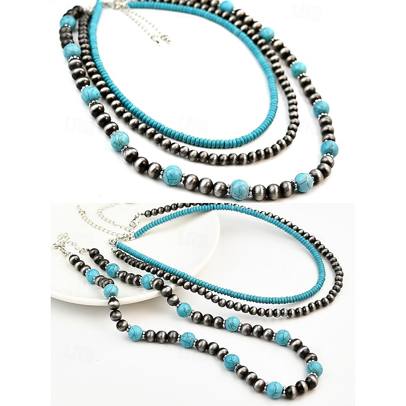 $14.99 - Women's Turquoise Beaded Layered Necklace – Southwestern Boho Style Jewelry for Casual Outfits, Beach Parties and Summer Festivals 2025. Shop for cheap Women's Necklace online? Buy at lightinthebox.com on sale today!