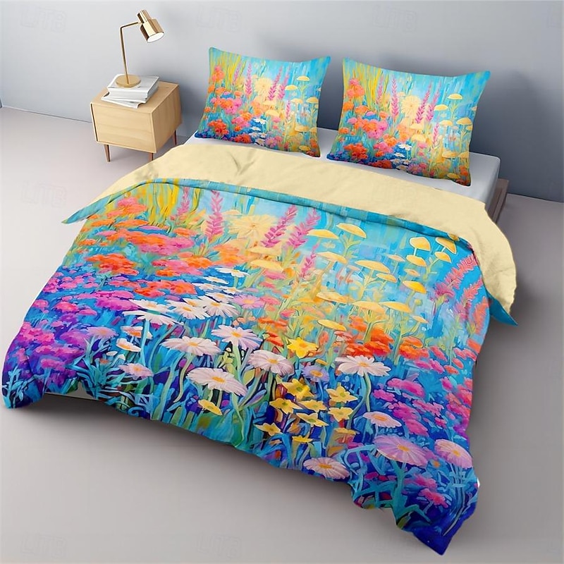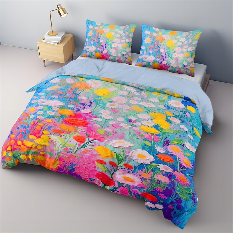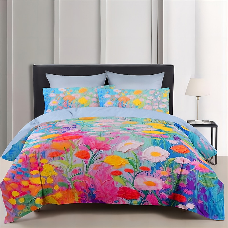 Oil Painting  Floral Pattern Duvet Cover Set Comforter Set Soft 3-Piece Luxury Cotton Bedding Set Home Decor Dusk Bedding Gift King Queen Full Size 1