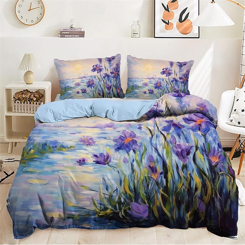 Oil Painting  Floral Pattern Duvet Cover Set Comforter Set Soft 3-Piece Luxury Cotton Bedding Set Home Decor Dusk Bedding Gift King Queen Full Size 10