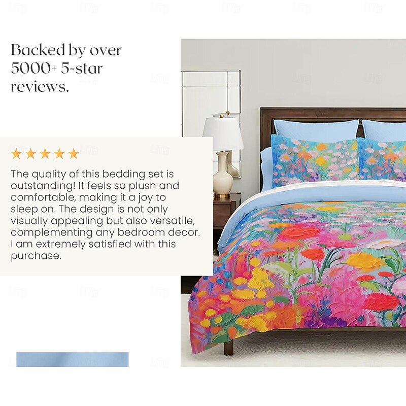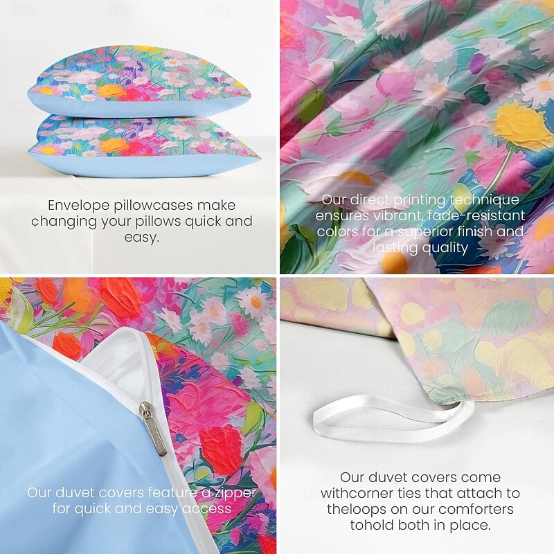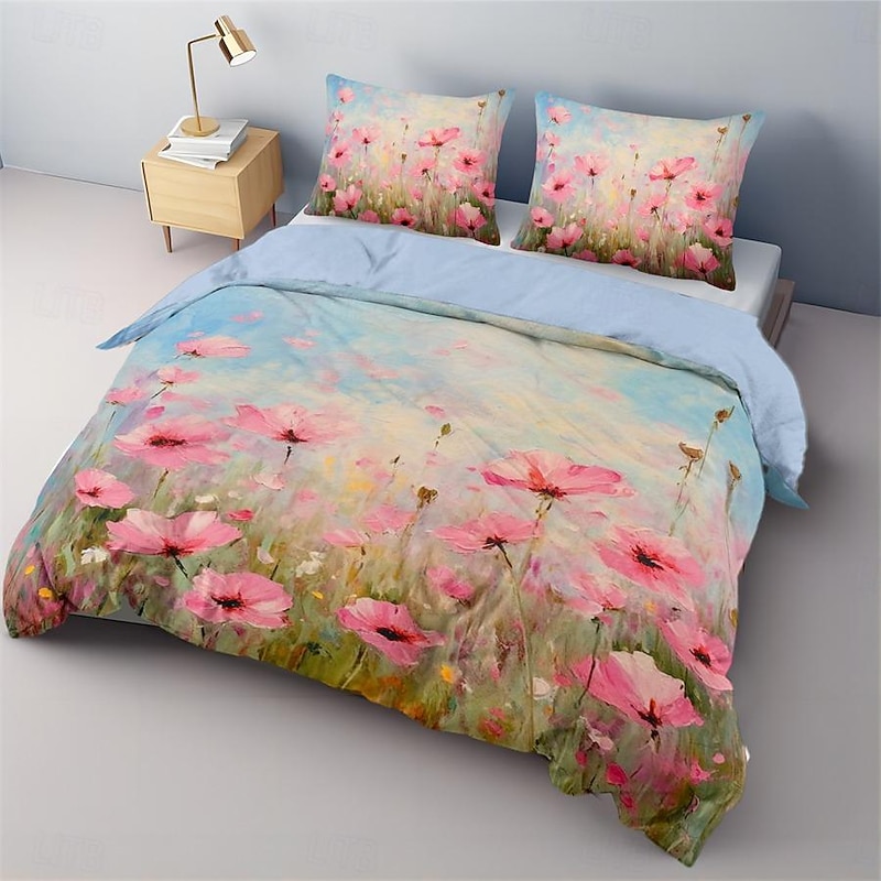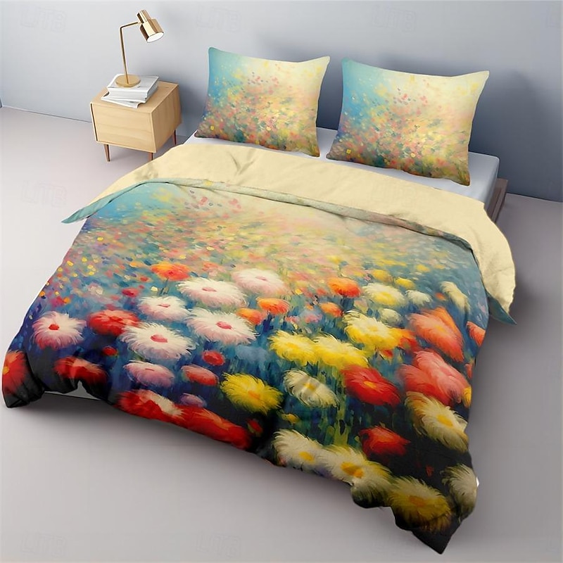 Oil Painting  Floral Pattern Duvet Cover Set Comforter Set Soft 3-Piece Luxury Cotton Bedding Set Home Decor Dusk Bedding Gift King Queen Full Size 7
