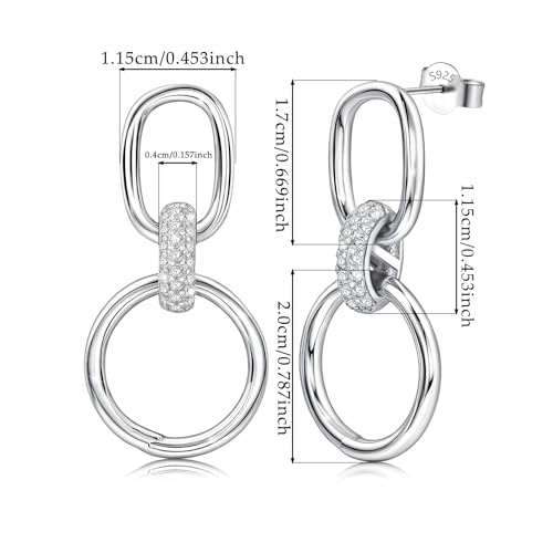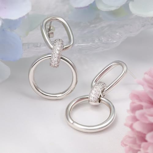 • ♥ Sterling silver women's earrings is a classic silver dangle earring. The earrings are joined together by an oval stud earring and a hollowed-out circle through a circle inlaid with cubic zirconia. Stylish, classic dangle earrings are suitable for most women to complete the clothing style, making it even more fashionable!