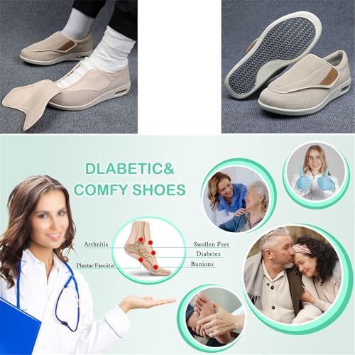 Outer material: ClothInner material: ClothClosure type: No-closureWide fit : This Mens Comfy Adjustable Breathable Mesh Diabetic Shoes, Thereβs plenty of room in the toe for comfort, provide the maximum level of comfort for those with wide feet, This diabetic slippers men, enough room on the sides so your toes donβt feel squishedlightweight materials : This Orthopedic Diabetic Shoes, The EVA molded midsole and TPU air cushion system can absorb impact and increase rebound. This Mens Comfy Adjustable Breathable Mesh Diabetic Shoes, can absorb impact and provide cushioning for walkingLightweight Design : This Mens Comfy Adjustable Breathable Mesh Diabetic Shoes, are incredibly light, making them perfect for all-day wear without feeling heavy or cumbersome. This wide shoes for elderly, Softfeel walking for neuropathy, swollen feetfor menPain relieve : This Comfy Extra Wide Width Shoes, Anyone who is having problems with diabetes, or backache, This Mens Comfy Adjustable Breathable Mesh Diabetic Shoes, help relieve pressure on your feet and are not tired from walking all dayEffortless Versatility : This Mens Comfy Adjustable Breathable Mesh Diabetic Shoes, effortlessly bridge the gap between formal and casual occasions, This comfort diabetic shoes, making them a perfect choice for a variety of settings, from urban daily wear to multipole situations Perfect for everyday use. superior materials and excellent craftsmanship ensure long-lasting durability.