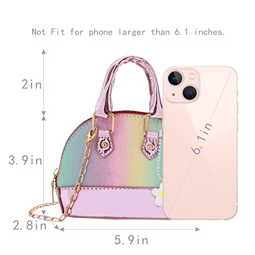 Fabric type: Patent leatherOrigin: ImportedClosure type: ZipperLining: PolyesterMaterial: Selected patent leather & sequin fabric with polyester lining, glittering, sturdy and lightweightSize: 6.3 * 3 * 4.5 inch/16 * 7.5 * 11.5 cm(L * W * H); Drop Length of Top Handles - 2.6 inch/6.5 cm; A mini & sweet addition to baby girl's going out look; Mini purse is very popular now, so teens & adults may enjoy this satchel purse as wellMini shell shaped dome style, exquisite splicing technology of sequin body and patent leather bottom, decorated with delicate little star and tassel pendant(the color and style is random), convenient zip-around design, trendy yet mini designer satchel purse; The removable gold chain strap allows baby girl to easily change style from a top handle handbag to a shoulder/crossbody bagOne main compartment with zipper closure makes the satchel purse easy to use; Mini sized coin purse can hold lipstick, candies, hair accessories, coins, cards, change, tissue, or other small treasures(This is a mini purse, Not Fit For Cell Phone, please kindly check the detailed size before purchasing)A pretty cute mini tote handbag to surprise your little ones; This sequin purse is truly the one gift that will be enjoyed to kindergarten, school, shopping, park, travel and party; Multiple colors can match with all kinds of different outfits Perfect for everyday use. top-grade materials and excellent craftsmanship ensure long-lasting durability.
