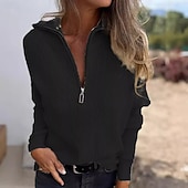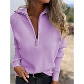 More information about Women's Quarter Zip Pullover Elegant Vintage Streetwear Solid Color Ribbed Shirt Collar Zipper Long Sleeve Regular Tops Knit School Formal Outdoor Black Pink Spring Fall