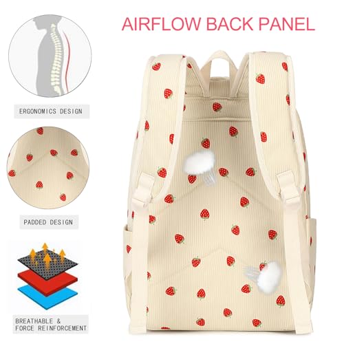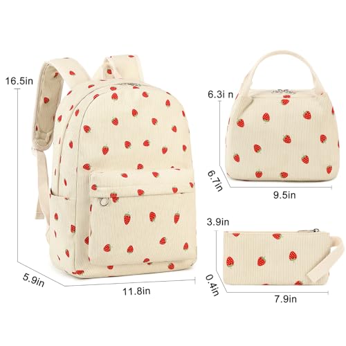 More information about Kids Backpack for Girls Women School Bag Laptop Backpack Casual Daypacks with Lunch Box Pencil Case for Preschool Kindergarten Elementary Bookbag, Strawberry