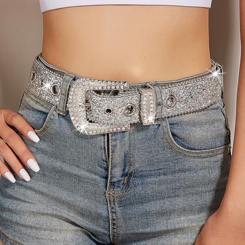 HOT ! Abien Rhinestone Belt Cowgirl Belts for Women Bling Belt Silver Rhinestone Belts for Jeans Dresses