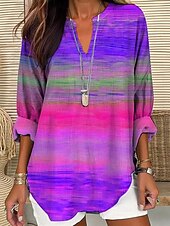 More information about Women's Blouse Tunic V Neck Long Sleeve Boho Casual Tops Ombre Graphic Geometric Vintage Daily Stylish Regular Tops Daily Print Blue Purple Orange Green Fall