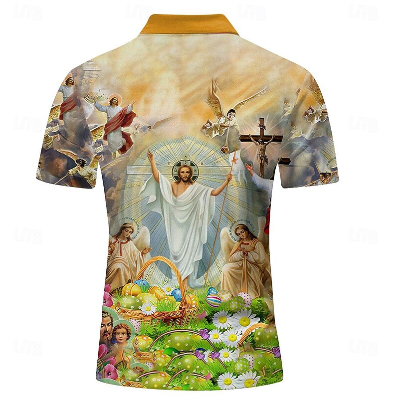 More information about Men's Graphic Prints Easter Jesus Polo Shirt Golf Shirt Short Sleeves Shirt Turndown Outdoor Street Yellow Pink Blue Green Print Button-Down Clothing Apparel Fashion Designer Casual Breathable