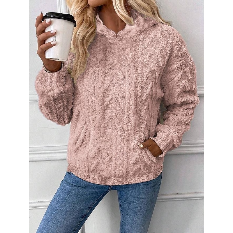 More information about Women's Hoodie Sweatshirt Elegant Fashion Comfrt Fleece Plain Work Street Dailywear Hooded Pocket Loose Fit Long Sleeve White Pink Blue Khaki Fall Winter