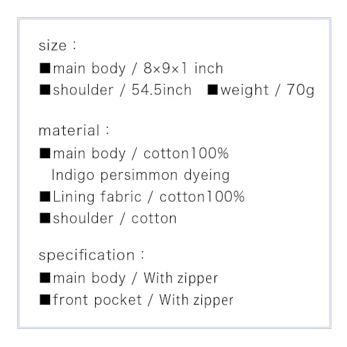 More information about Crearekiki Made in Japan Shoulder Bag for Women Indigo Persimmon Shibu Dyed 2 Zipper Pochette Mother Birthday Present IZ-111