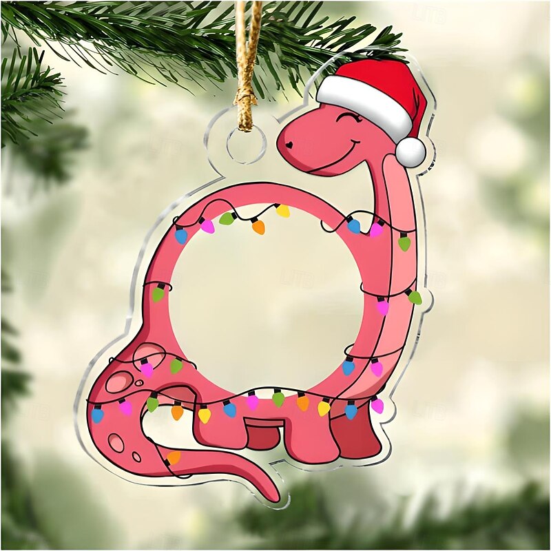 Personalized Photo Christmas Ornaments Acrylic 2D Custom Baby Face Christmas Tree Ornaments Xmas Decoration Hanging Pendant Gifts Cute Dinosaur 11