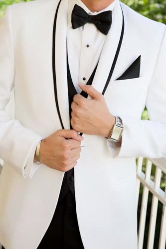 HOT ! Mens Tuxedo Suits 3 Piece Slim Fit Dinner Prom Suit Shawl Lapel 1 Button Tux Blazer Vest and Pants with Bow Tie