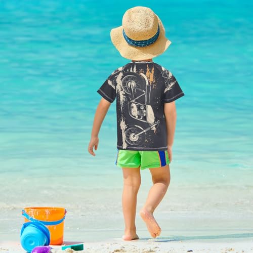 Boys Short Sleeve T-Shirts Fire Motorcycle Graffiti Rashguard Kids Swim Shirts Sun UPF 50+ Multicoloured 1