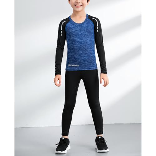 easyforever Kids Boys Compression Sets Thermal Long Sleeve Top And Leggings Athletic Set Gym Sport Fitness Underwear Suits Blue 5-6 Years 6