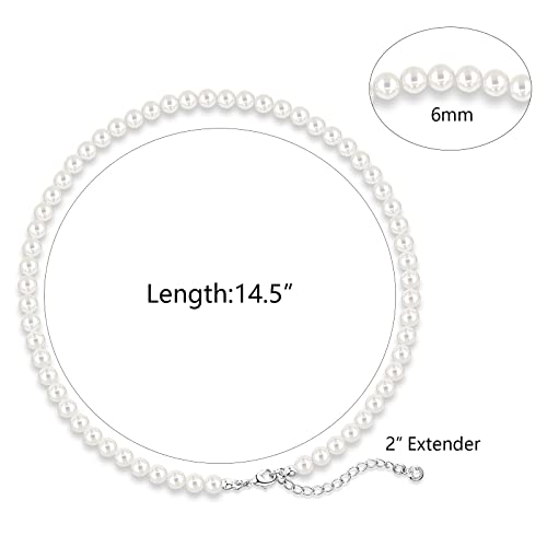 Silver 6MM Cream White Round Pearl Choker, 14K Gold Plated Dainty Cross Bow Lobster Clasp Necklace for Women Jewelry Gifts 5