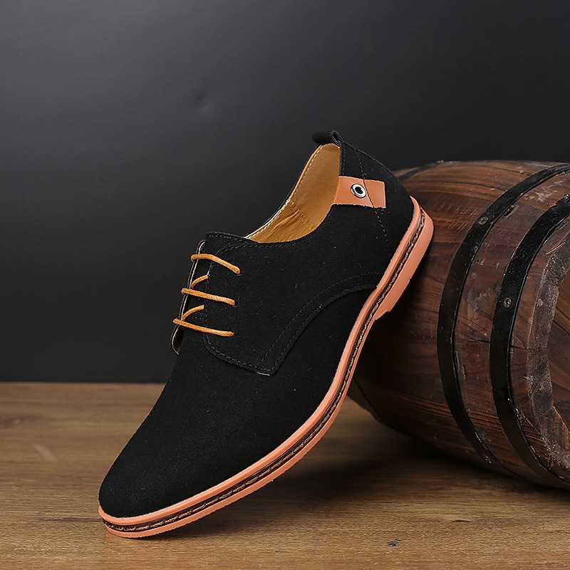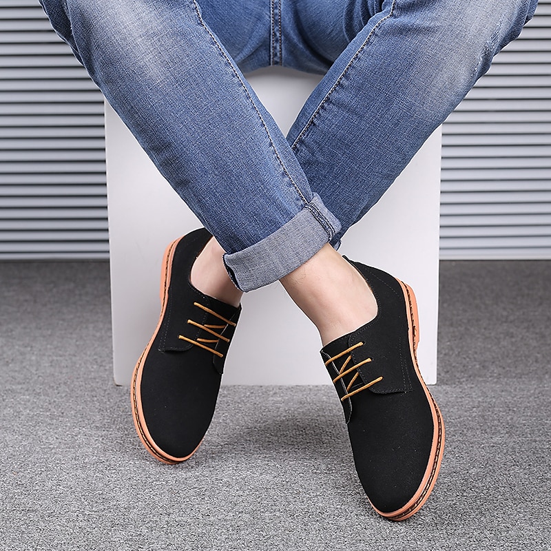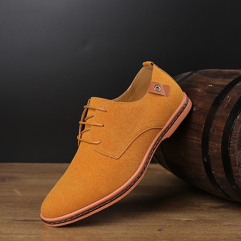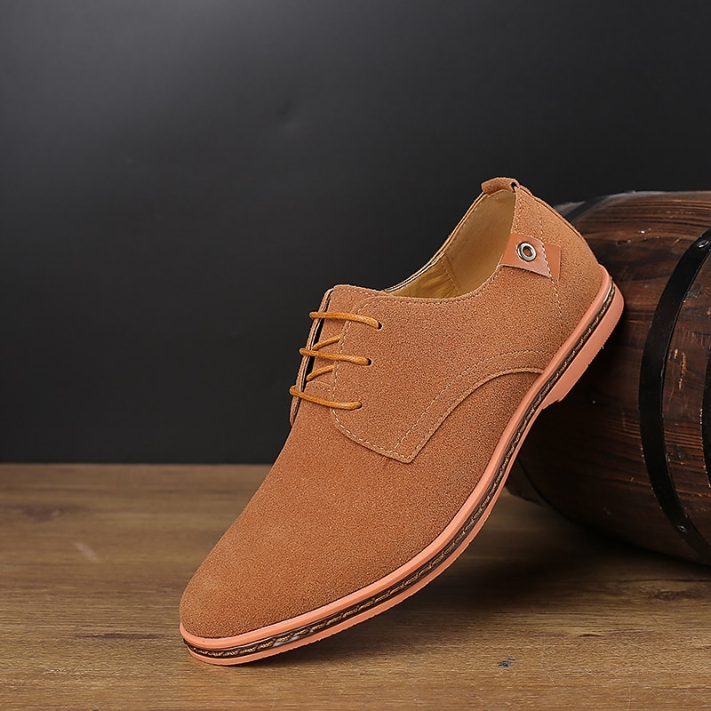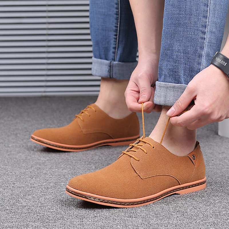 Highlights [Fabric and Material] : Crafted from premium green suede, these men's Oxford shoes offer a soft texture and an alluring matte finish. The upper is complemented by stylish brown leather laces, while the sturdy brown rubber sole ensures long-lasting wear and enhanced traction. [Style and Fit] : Designed with a low-profile silhouette, these shoes present a perfect blend of casual and semi-formal appeal. The pointed toe shape adds a touch of vintage charm, making them suitable for various occasions with timeless elegance. [Design Highlights] : Featuring distinctive metal embellishments, these shoes offer an additional layer of sophistication. The tasteful contrast of green suede and tan accents, alongside the durable rubber soles, provides a modern twist on the classic Oxford design. [Occasions] : These versatile shoes are ideal for daily wear, outdoor activities, and office settings. They transition seamlessly from casual outings to formal events, ensuring you remain stylish and comfortable throughout the day. [Size Range] : Available in a wide range of sizes from US6 to US12, these shoes are crafted to fit perfectly and provide comfort across all-day wear, catering to the needs of modern-day gentlemen.