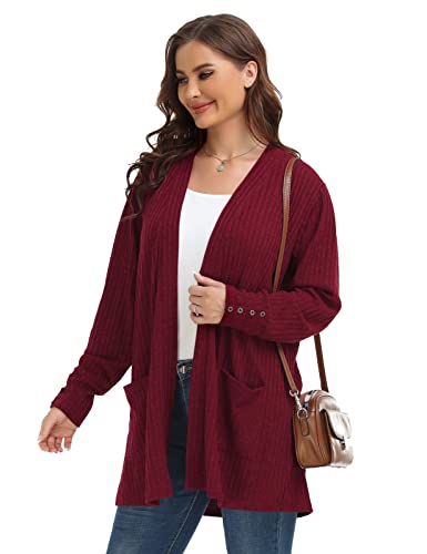 MONNURO Plus Size Open Front Cardigan Sweaters for Women Lightweight Long Sleeve Fall Coat with Pockets 3