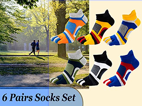 Men Toe Socks No Show Low Cut Athletic Wicking Cotton 5 Finger Split Toe 6 Pack 5