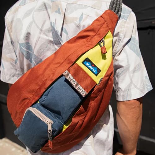 • Revamped design: The KAVU Rope Remix Bag Crossbody Backpack boasts an updated design, featuring new details such as the KAVU pattern webbing on the front pocket and an external zip pocket on the back. These new elements add a fresh touch to the classic Rope Bag design, making it a must have accessory for fashion forward individuals.