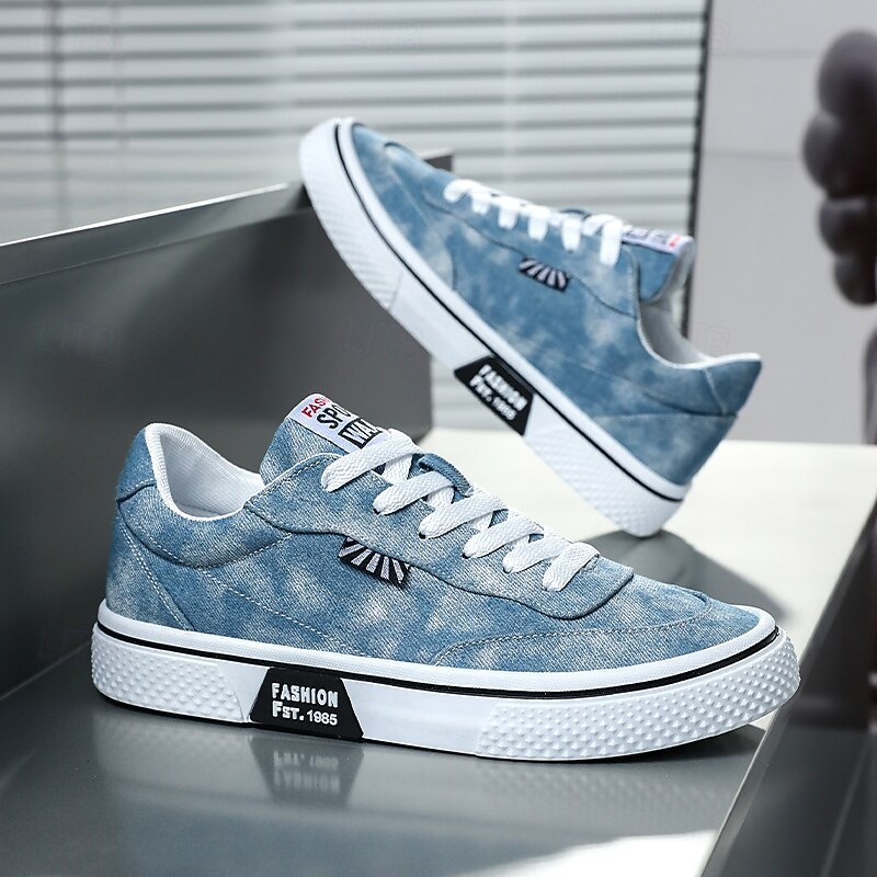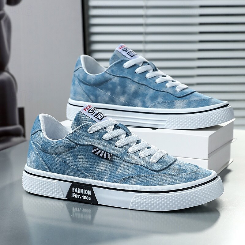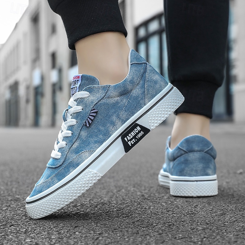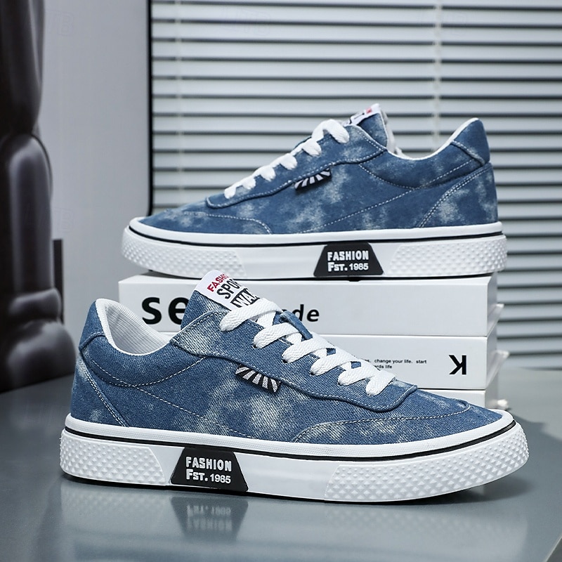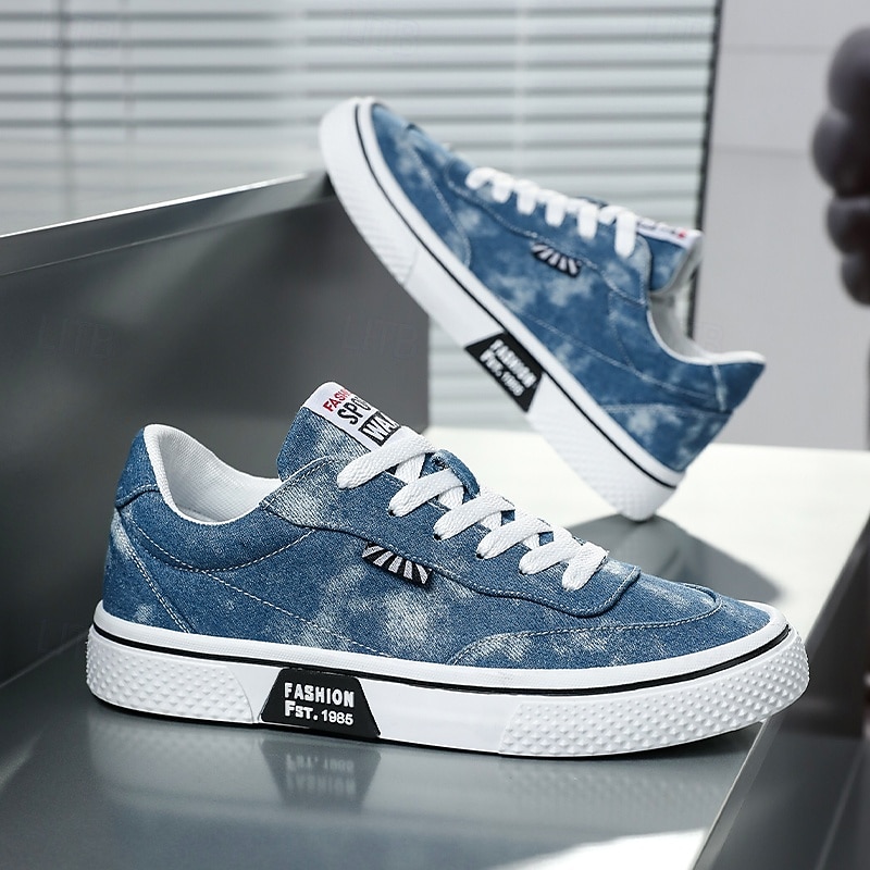 HOT ! Men's Blue Denim Sneakers with Graphic Print and Lace-up Design - Casual, Trendy, Ideal for Everyday Wear and Urban Adventures
