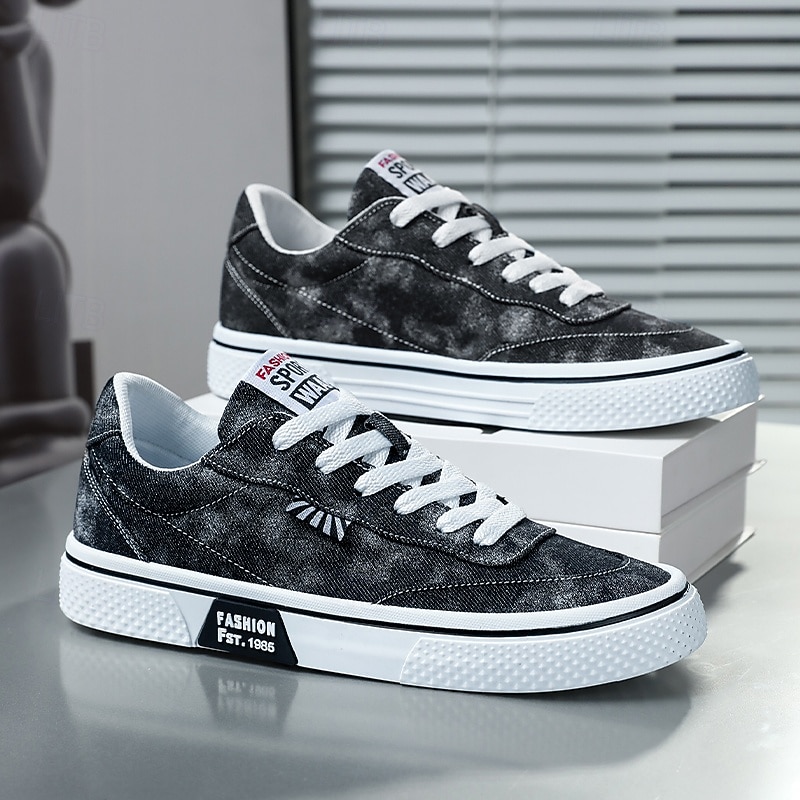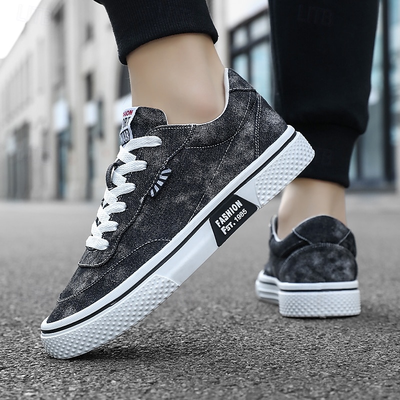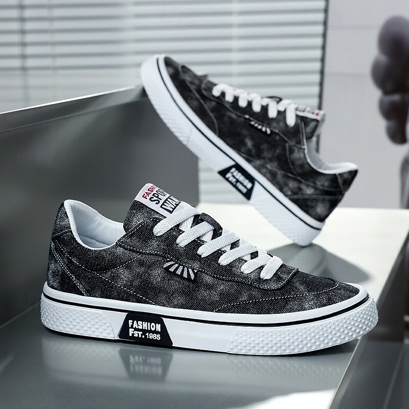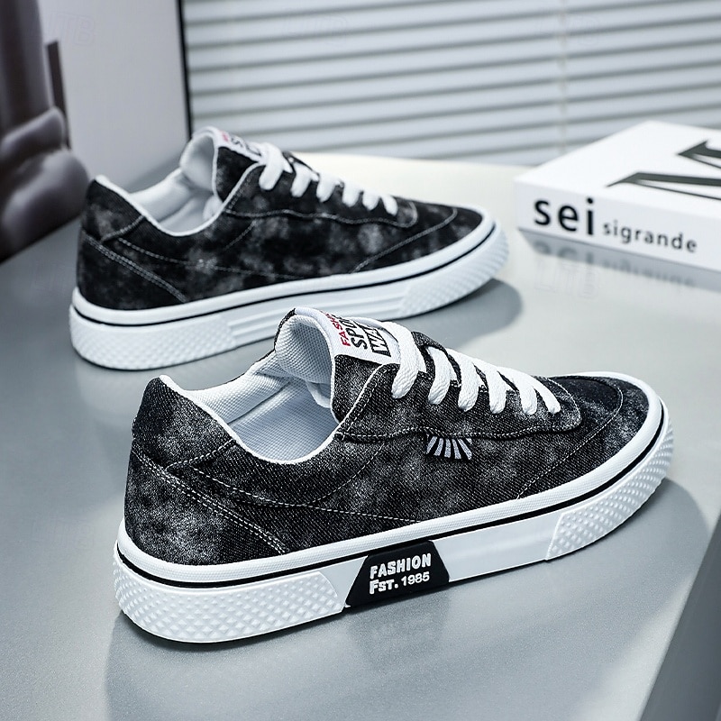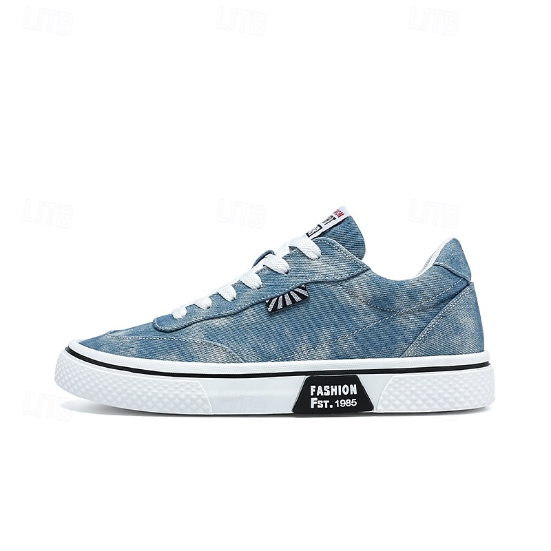 HOT ! Men's Blue Denim Sneakers with Graphic Print and Lace-up Design - Casual, Trendy, Ideal for Everyday Wear and Urban Adventures
