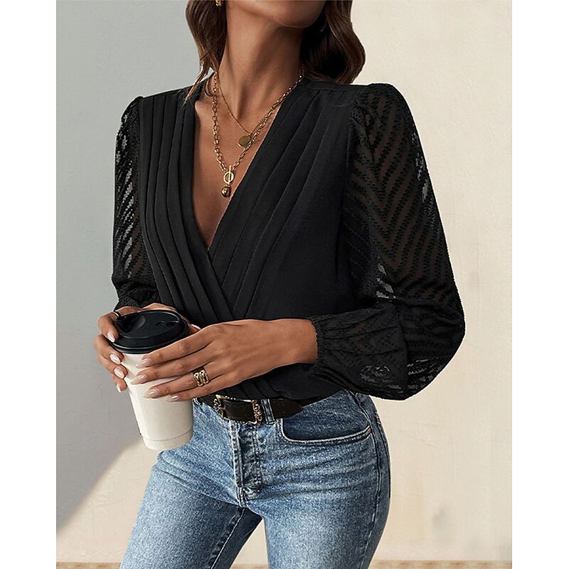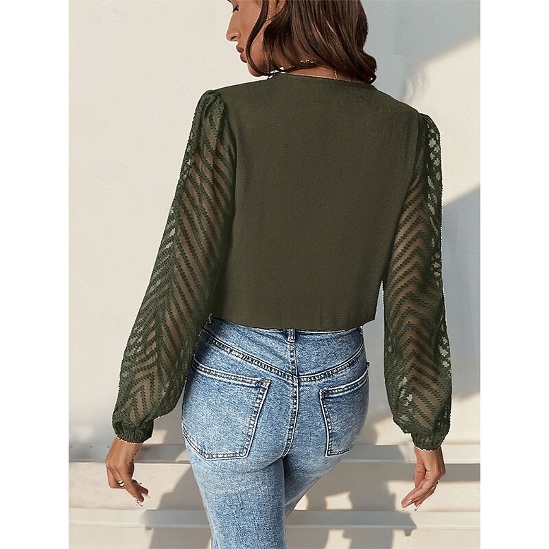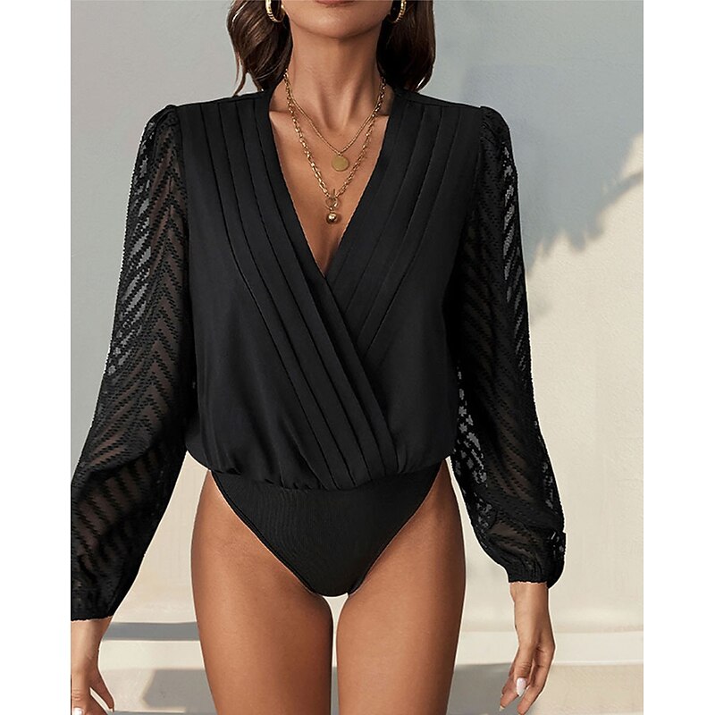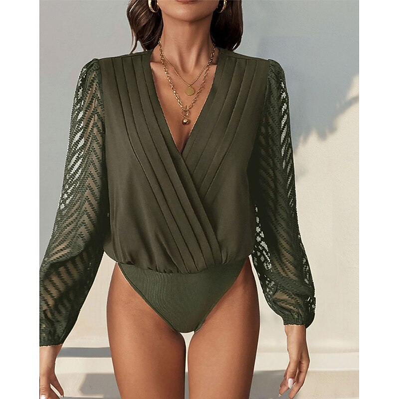 More information about Women's Normal Playsuit Stylish Solid Color Long Sleeve V Neck Party Work Regular Fit Black Red Green Spring